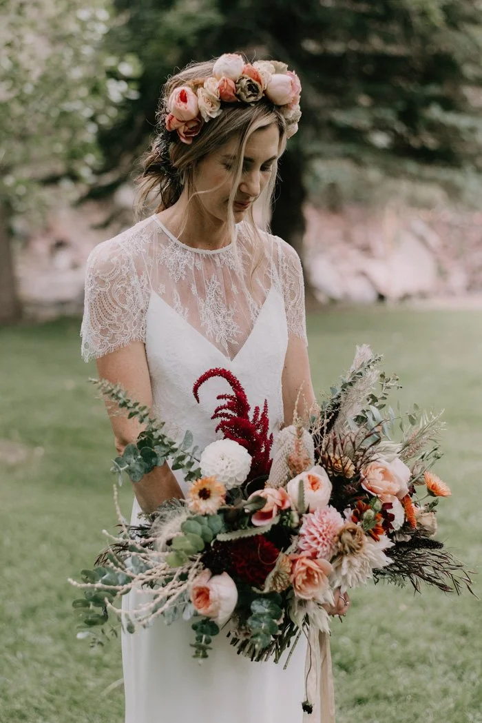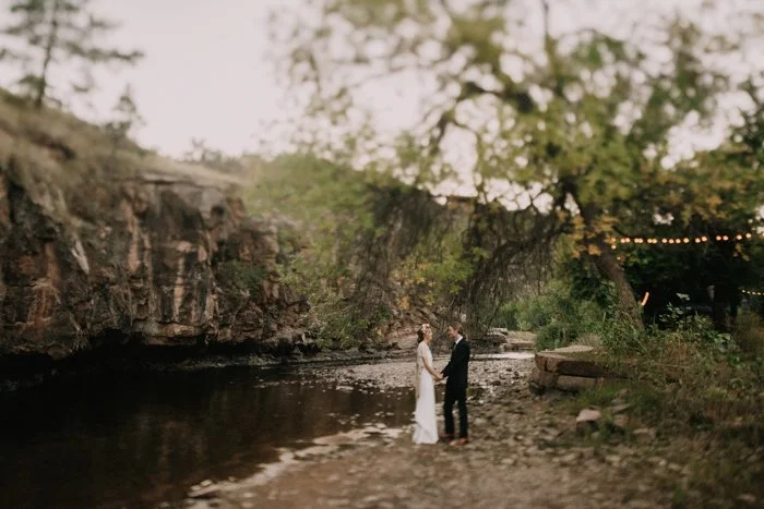 Nothing says summertime romance like the plethora of flowers used in every inch of this River Bend Lyons, Colorado wedding! Kate and Dustin used their love of the outdoors to guide the vibe and style of their lovely outdoor wedding, from the vibrant color palette to the camp-inspired teepees and trailers they integrated into the decor. The oh-so-talented team at root + gather events helped them create a cohesive look that was equal parts whimsical and romantic, and June Cochran Photography captured it all with exceptional attention to detail. We’re not exaggerating when we say you’ll want to make space on your Pinterest boards for every single detail of this Colorado wedding, especially the make-your-own flower crown station provided by Red Daisy Farm!